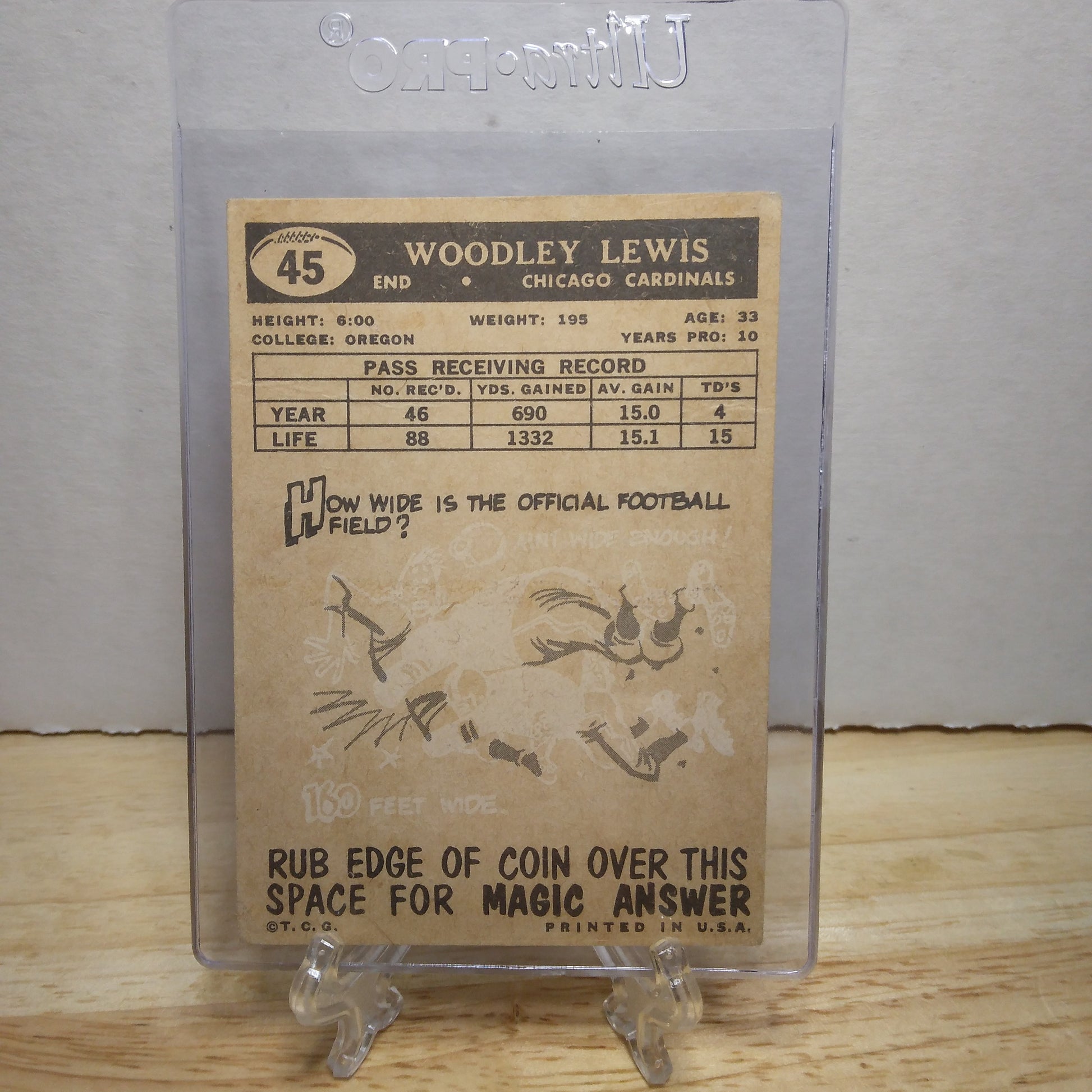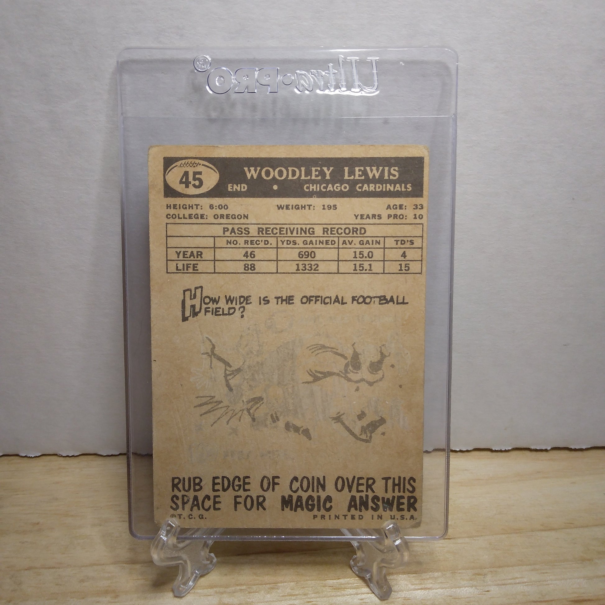 1959 Topps Woodley Lewis #45. Card comes in a semi-rigid card holder. Card condition is VG-EX 3-5 grade.