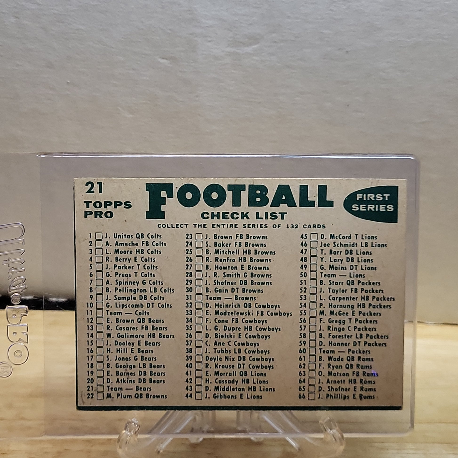 This rare collectible, 1960 Topps Chicago Bears Team #21, is in excellent condition and features the team roster of the Chicago Bears. An ideal addition to any sports memorabilia collection, this card is sure to be a valued item for any enthusiast.