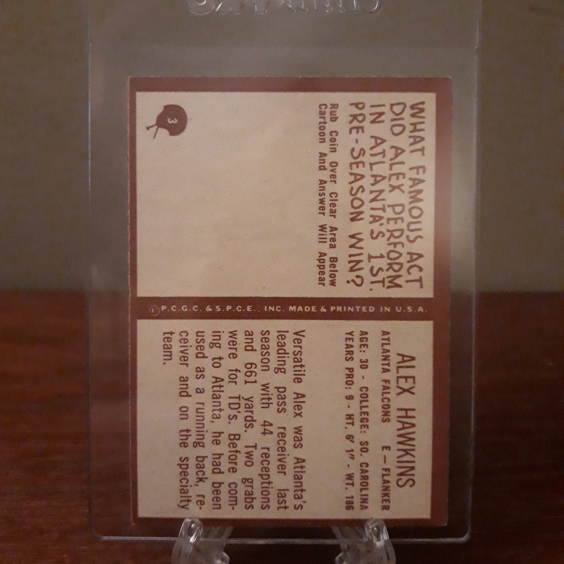 1967 Philadelphia Football Alex Hawkins #3. Card comes in a semi-rigid card holder ready for grading.