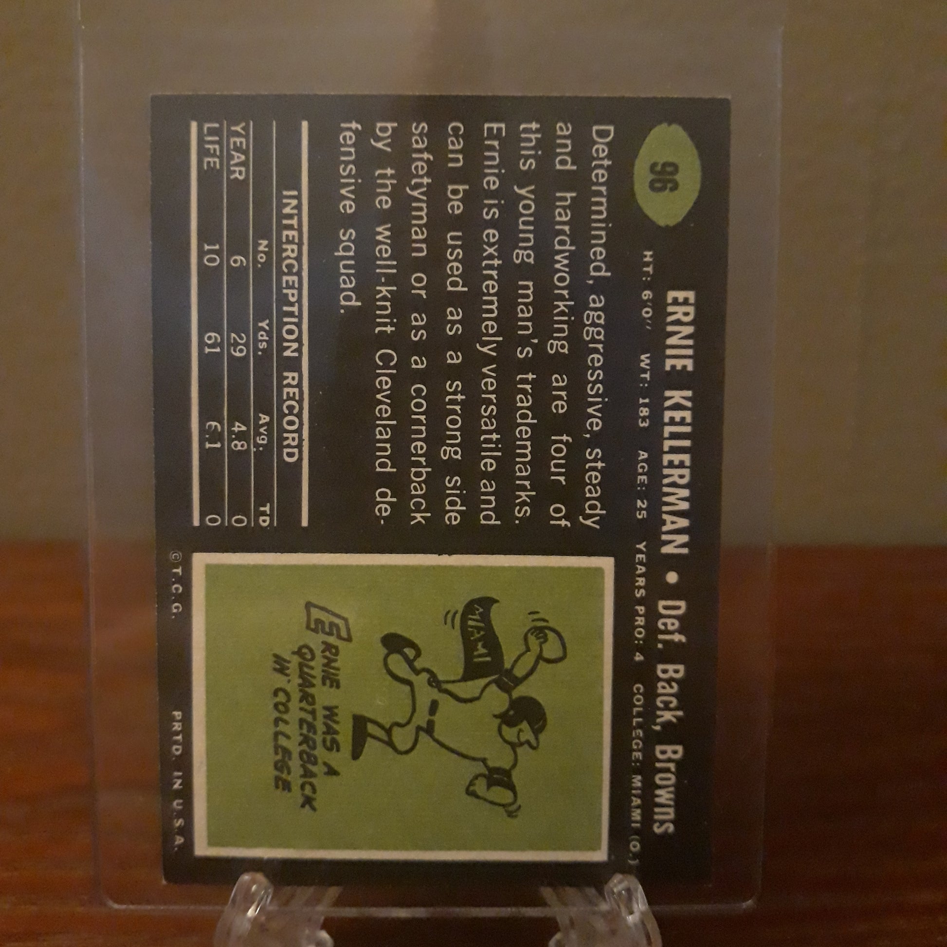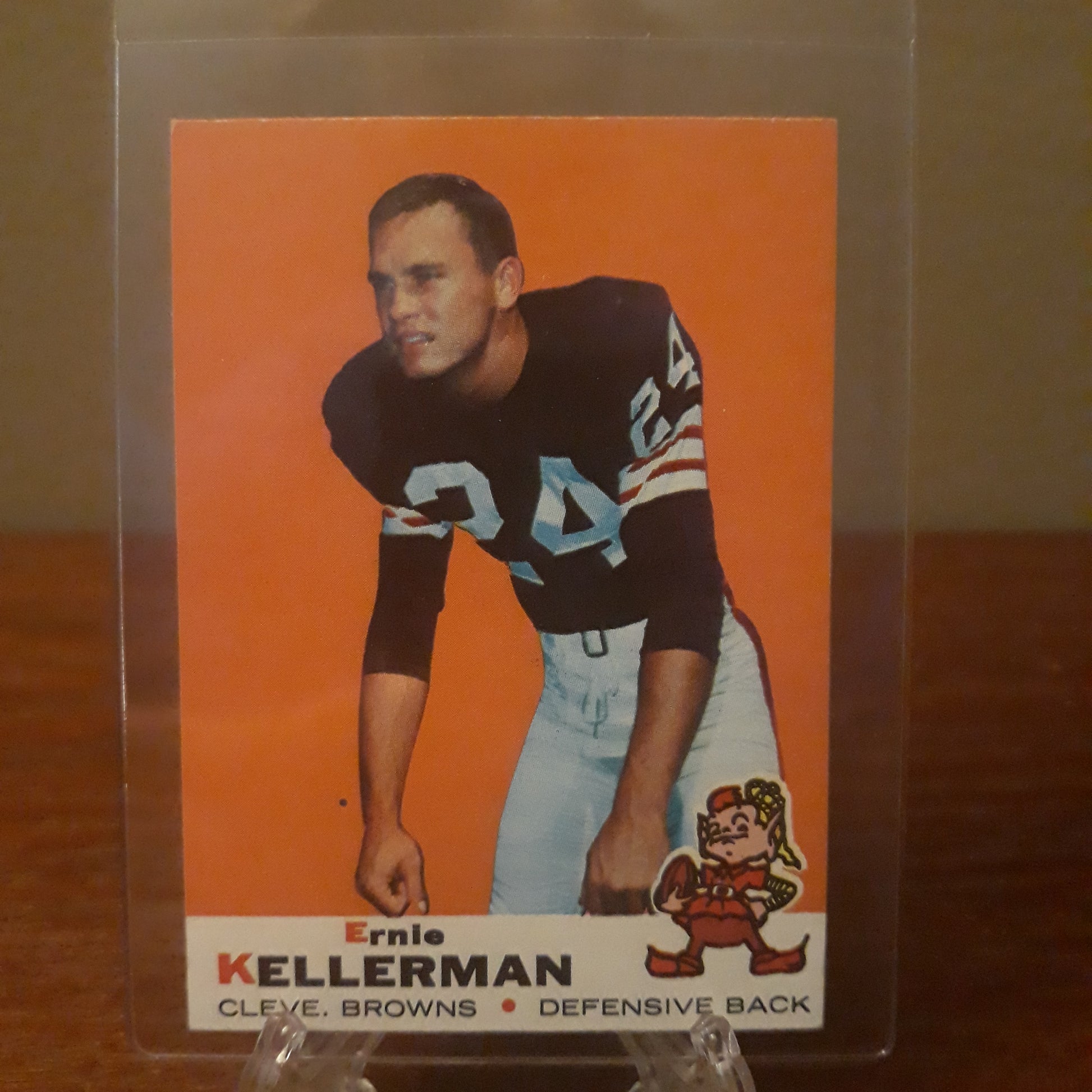 1969 Topps Football Ernie Kellerman #96. Card comes in a semi-rigid card holder ready for grading.