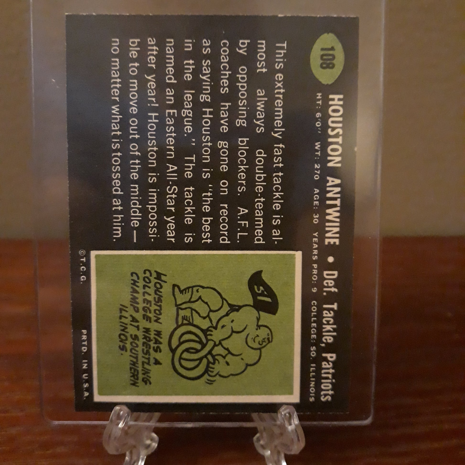1969 Topps Football Houston Antwine #108. Card comes in a semi-rigid card holder ready for grading.
