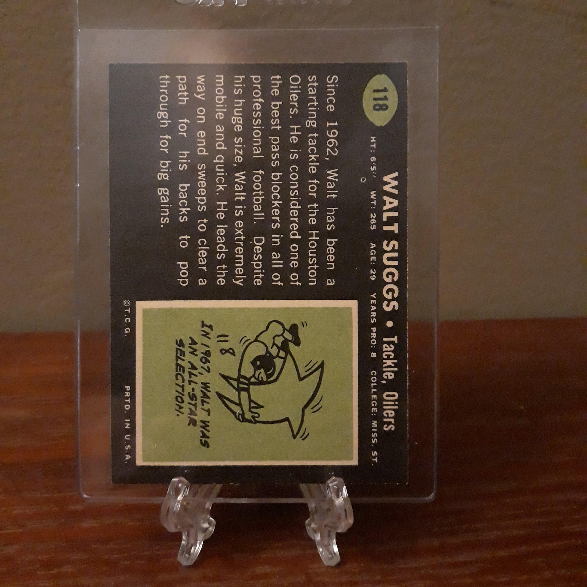 1969 Topps Football Walt Suggs #118. Card comes in a semi-rigid card holder ready for grading.