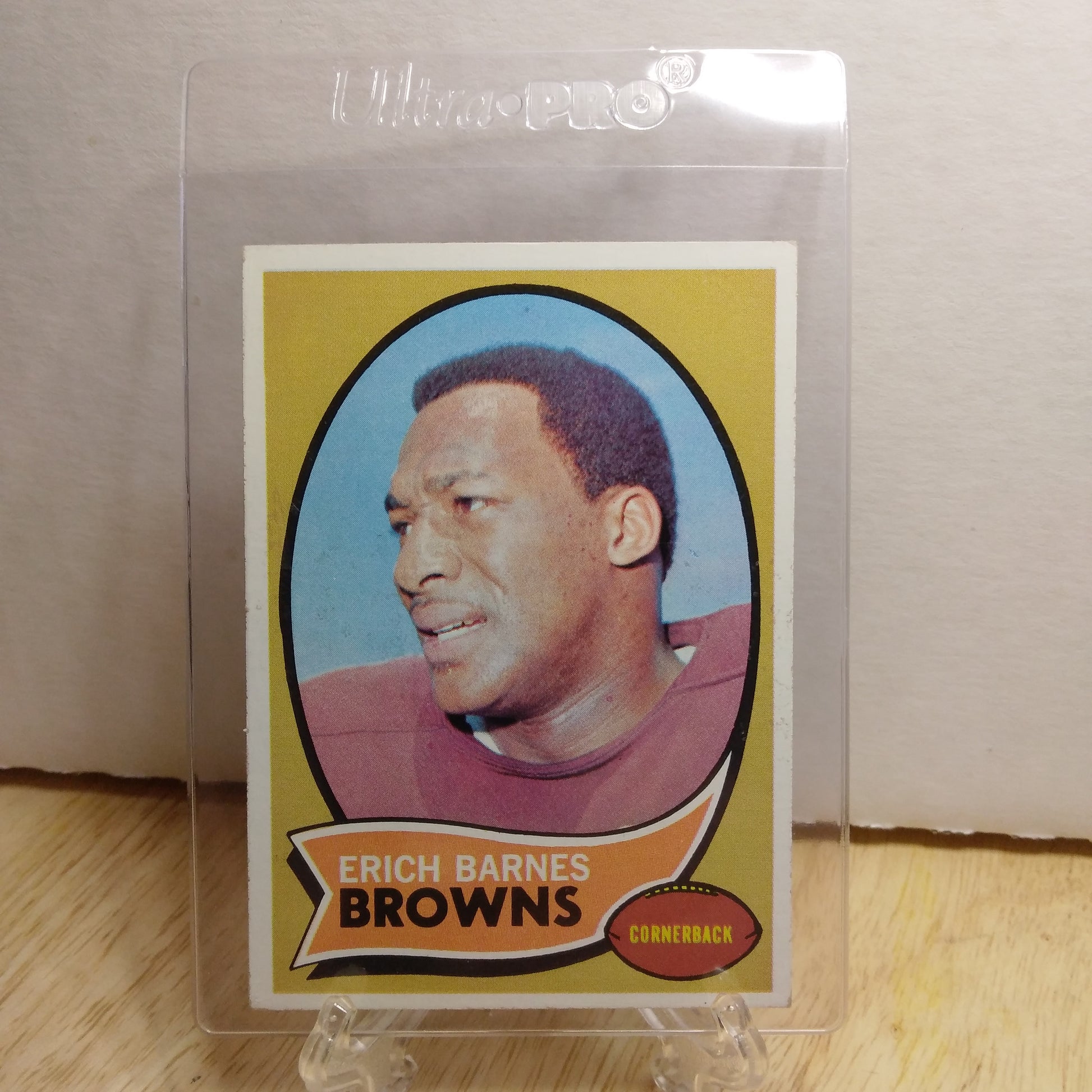 1970 Topps Erich Barnes #8. Card comes in a semi-rigid card holder. Card condition is VG-EX (5-7 grade).